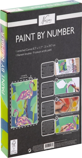Malowanie po numerach – zestaw zawiera elastyczne płótno z obrazkiem 21×29,7 cm, 1 szt. pędzla premium, 9 szt. farb akrylowych.