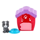 W zestawie znajduje się miska na karmę oraz figurka szczeniaczka. Domek zdobi kokardka i tłoczone łapki, które dodają zabawie uroku.