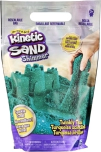 Ten turkusowo-zielony Kinetic Sand zapewnia luksusowy błyszczący efekt i nieskończoną dawkę twórczej zabawy. Piasek łatwo się ugniata, miesza, wykrawa i formuje, a dzięki swojej unikalnej formule zachowuje kształt bez wysychania. Idealny do zabaw sensorycznych, kojących kreatywnych chwil oraz rozwoju małej motoryki.