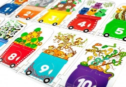 Puzzle ZOO Ekspres łączy kreatywną zabawę dzieci z nauką. Zawiera lokomotywę i dziewięć wagonów, w których dzieci uczą się nazywać zwierzęta i liczyć.