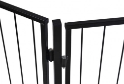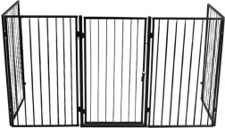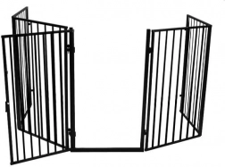 Praktyczna bramka zabezpieczająca do kominka chroni dzieci i zwierzęta domowe przed gorącą powierzchnią i otwartym ogniem. Dzięki pięciu segmentom na zawiasach łatwo dopasujesz ją do przestrzeni, ma łatwy montaż do ściany, zabezpieczenie przed przypadkowym otwarciem i jest kompatybilna z większością kominków. Solidna stalowa konstrukcja w czarnym kolorze, całkowita szerokość 304 cm i wysokość 74,5 cm zapewniają niezawodną ochronę w salonie.