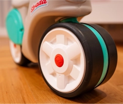 Szerokie koła oraz klakson na kierownicy zapewniają dodatkową stabilność i frajdę podczas jazdy.
