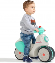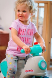 Jeździk Strada Retro przywołuje wspomnienia zabawek z lat 70. w nowej, nowoczesnej odsłonie. Jest idealny dla dzieci od 1. roku życia i wytrzymuje obciążenie do 25 kg. Dzięki cichym kołom pokrytym warstwą elastomerową jeździk zapewnia płynne i ciche wrażenia z jazdy, a szerokie koła gwarantują stabilność.