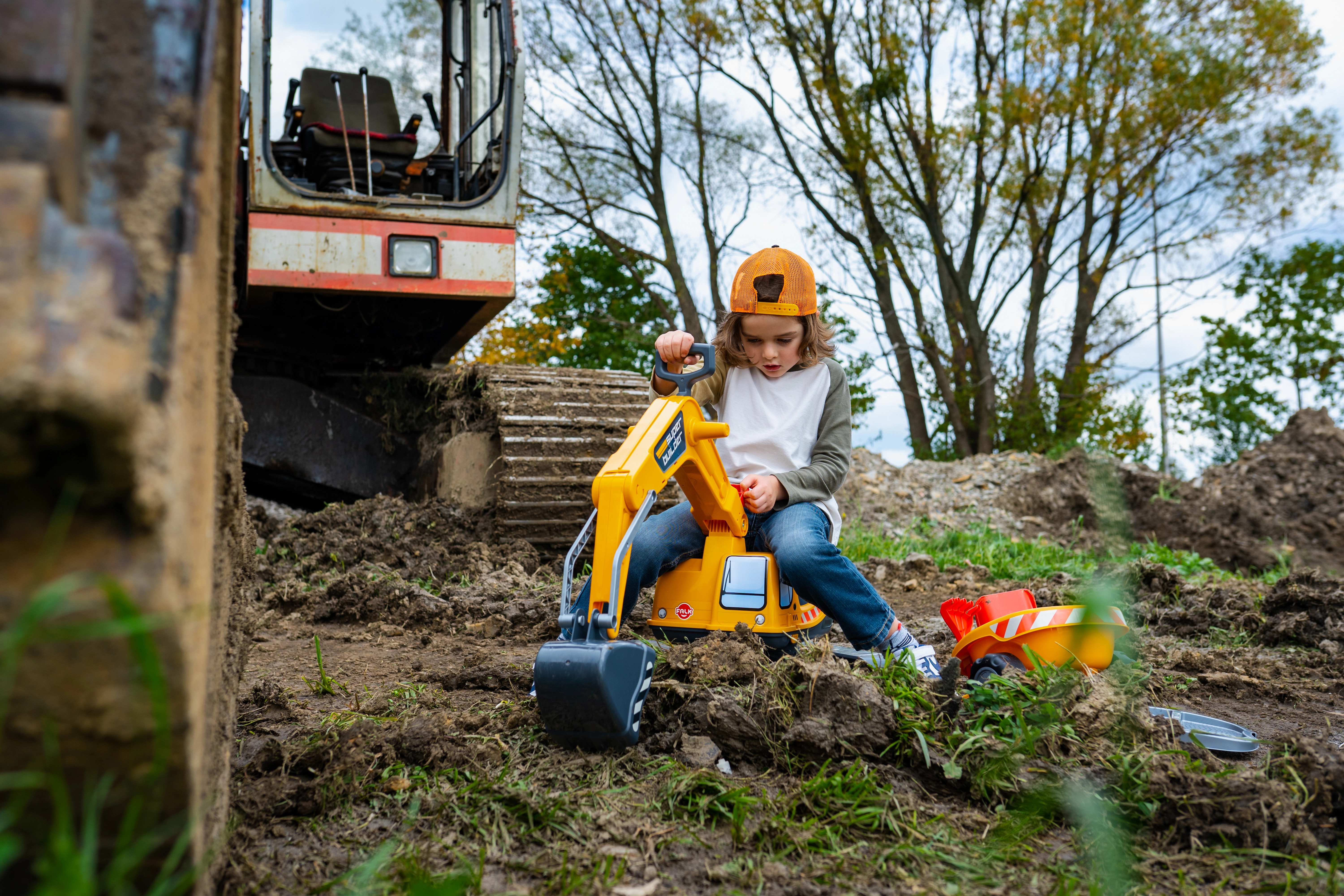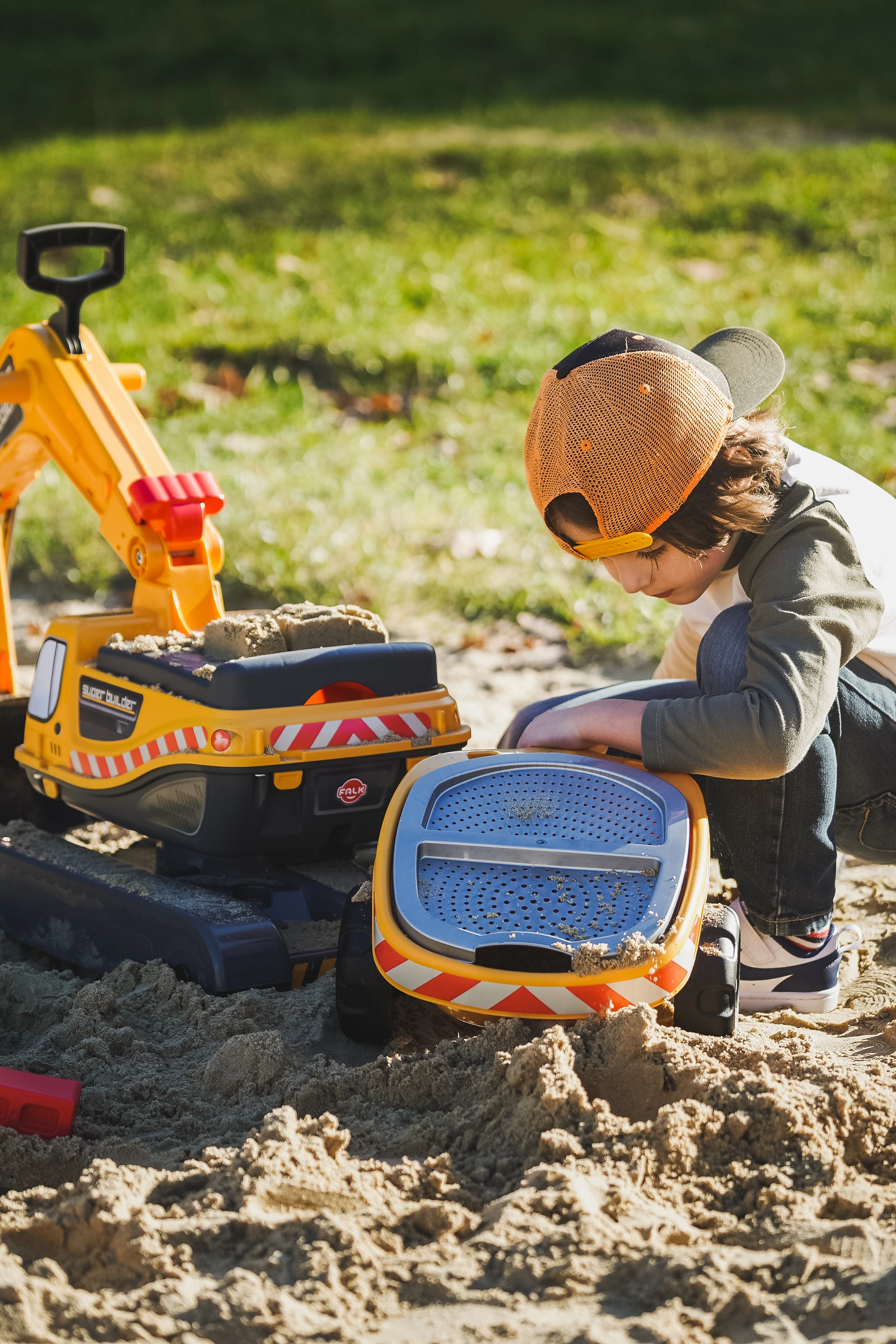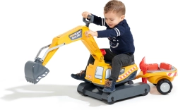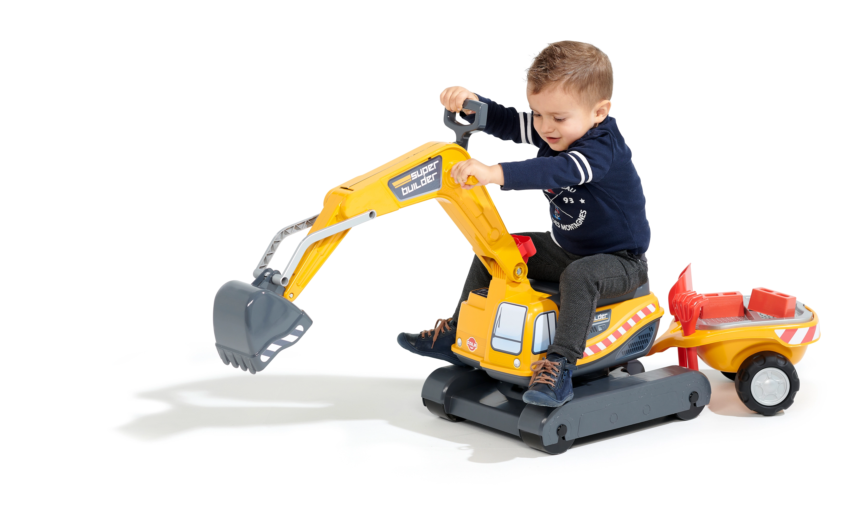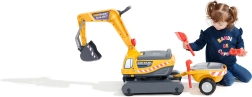 Odrážadło Super gąsienicowa koparka pomarańczowa z funkcjonalną łyżką, imitacją gąsienic, przyczepą oraz zestawem do zabawy w piasku – 2× foremka w kształcie cegły, łopatka i grabki. Wykonane z wysokiej jakości i wytrzymałego plastiku. Wymiary 85×38×67 cm. Wiek 3+. Wszystkie traktory Falk są testowane do 50 kg – zgodnie z wymaganiami norm europejskich. Wyprodukowano we Francji.