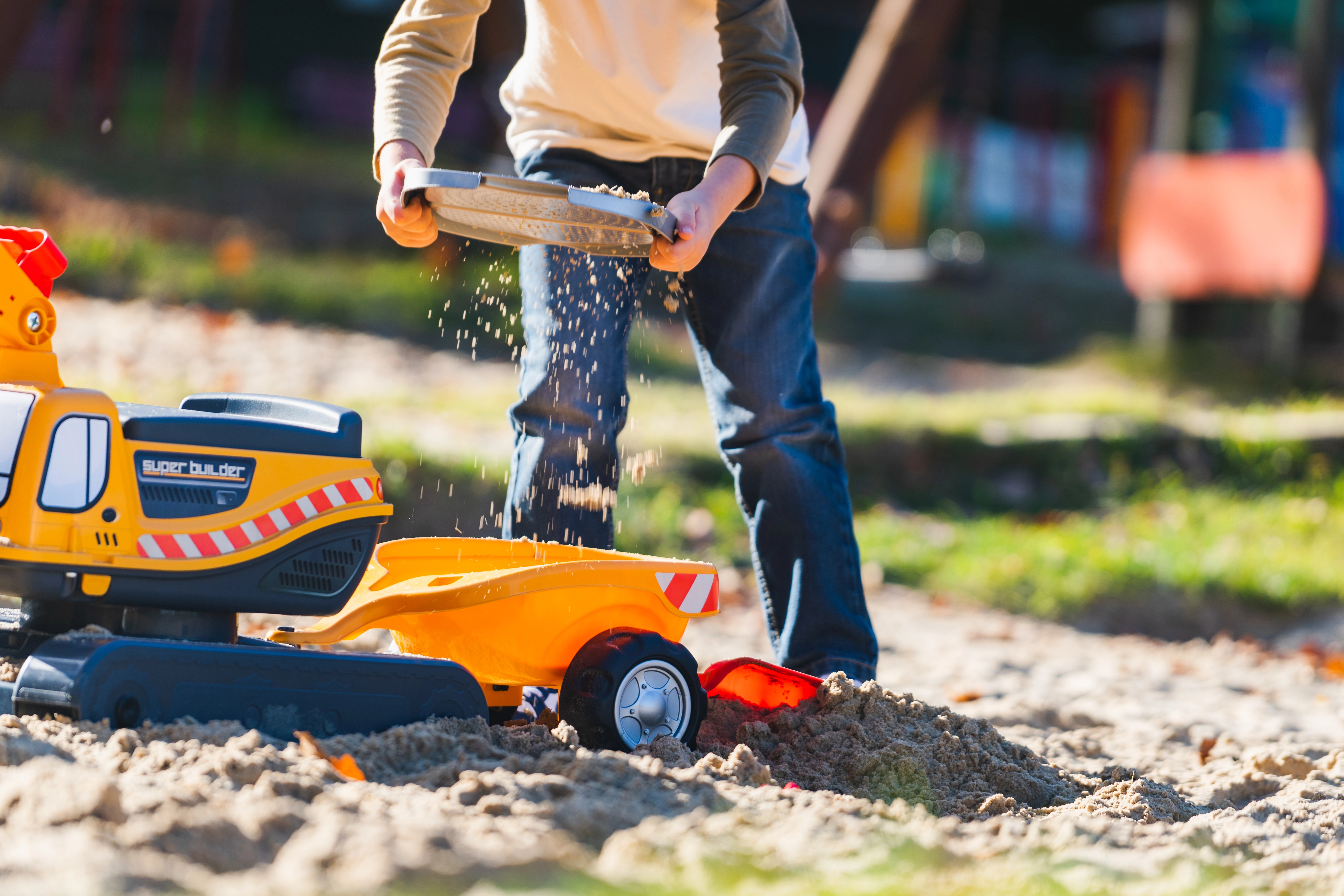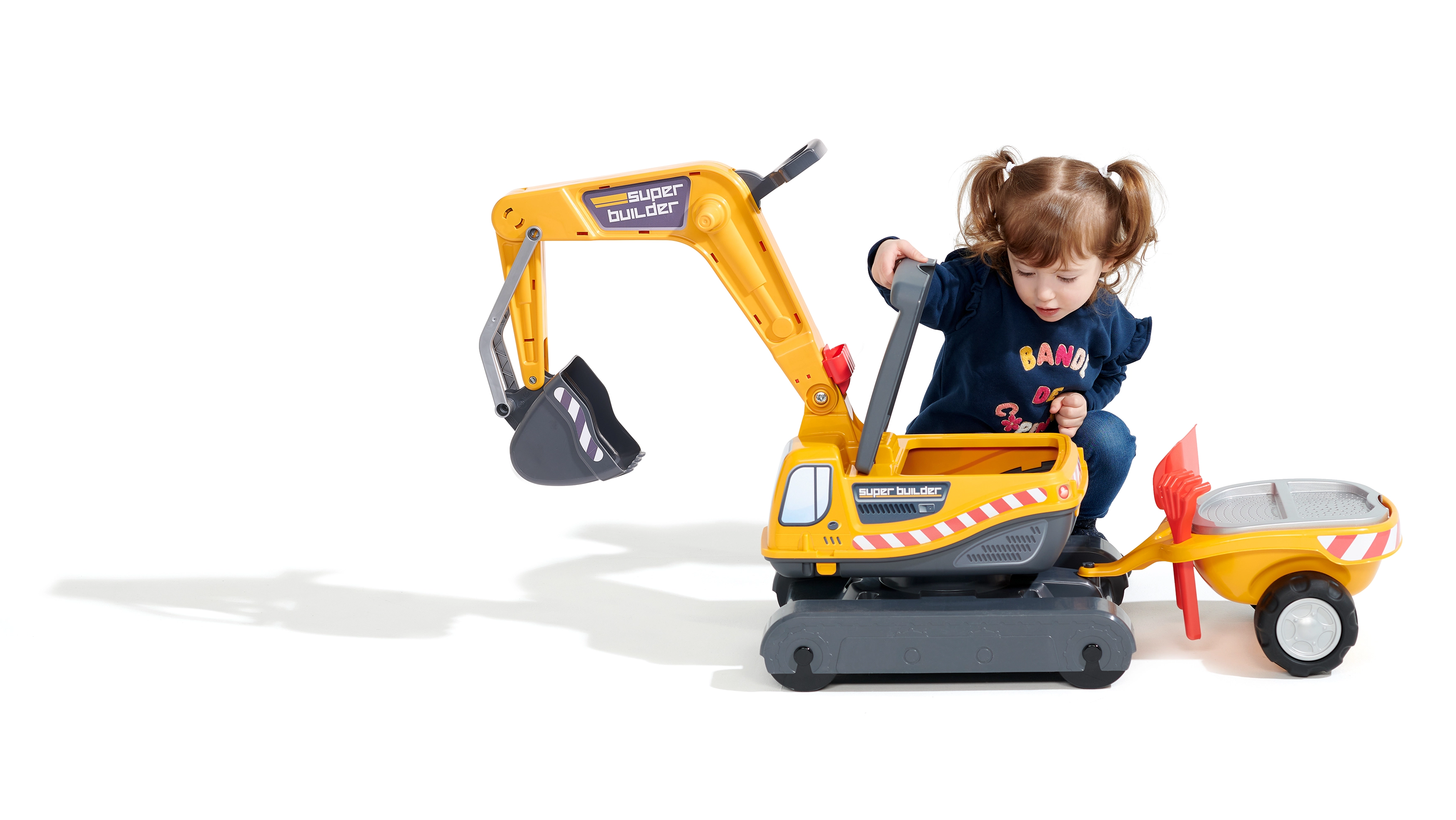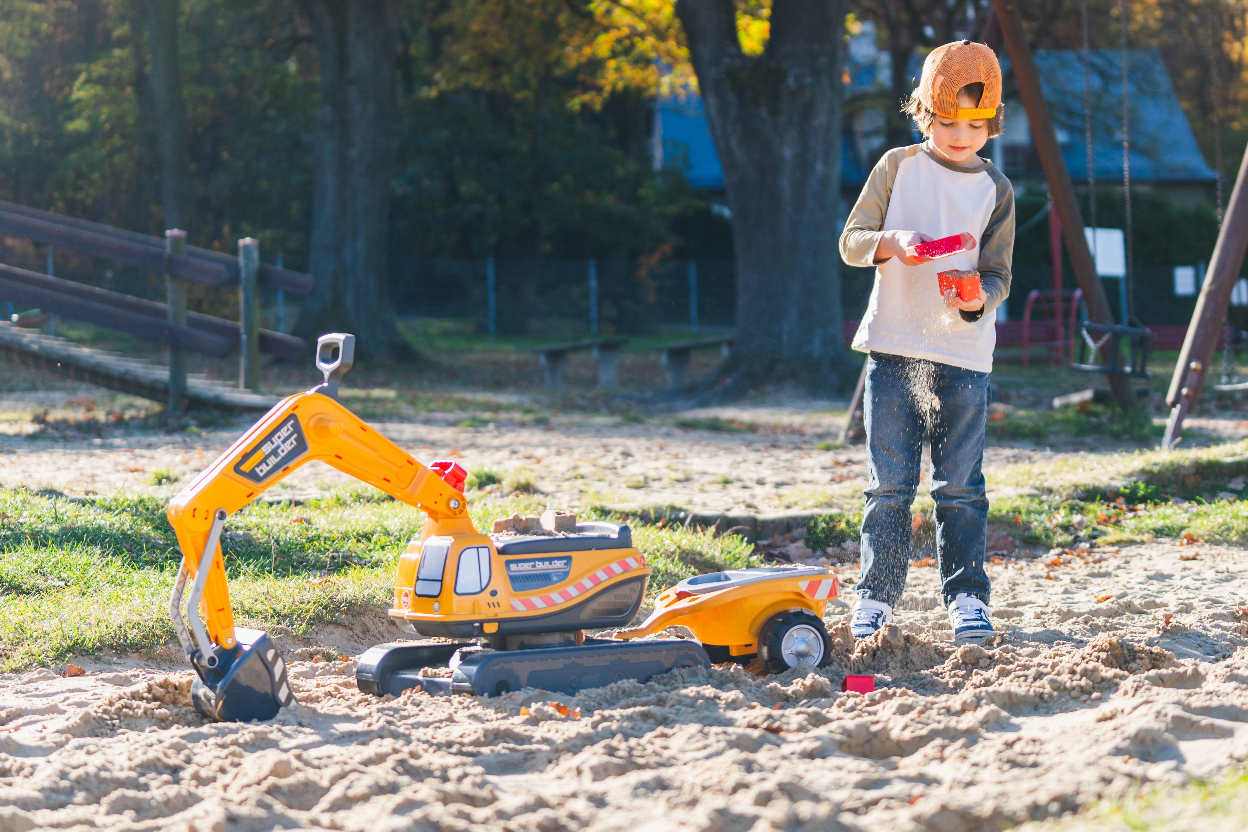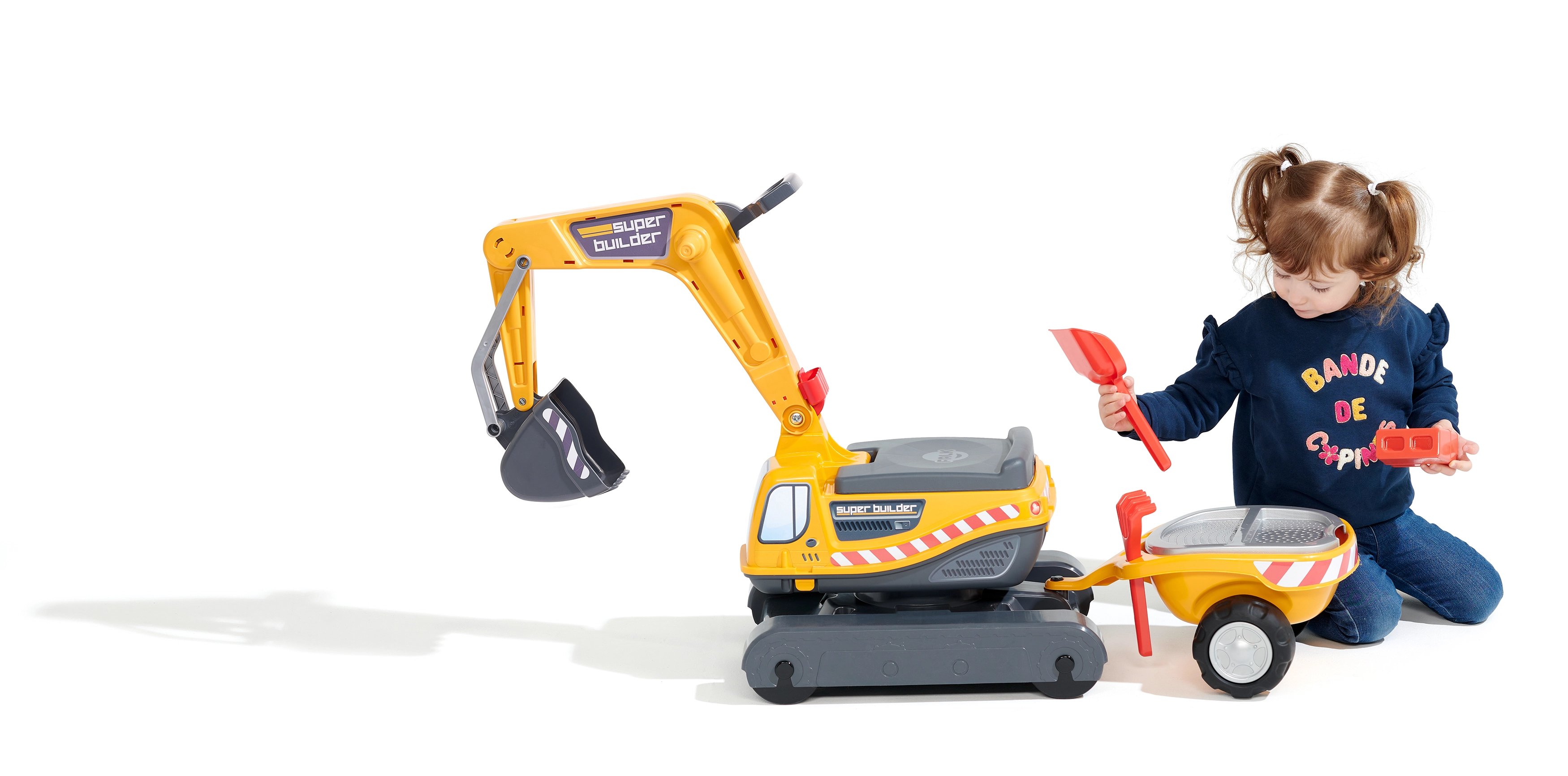 Odrážadło Super gąsienicowa koparka pomarańczowa z funkcjonalną łyżką, imitacją gąsienic, przyczepą oraz zestawem do zabawy w piasku – 2× foremka w kształcie cegły, łopatka i grabki. Wykonane z wysokiej jakości i wytrzymałego plastiku. Wymiary 85×38×67 cm. Wiek 3+. Wszystkie traktory Falk są testowane do 50 kg – zgodnie z wymaganiami norm europejskich. Wyprodukowano we Francji.