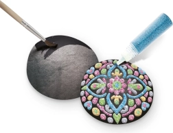 Z tym twórczym zestawem z łatwością stworzysz efektowne mandalowe wzory i lśniące motywy na gładkich kamieniach. Dzięki połączeniu czarnego tła, metalicznych farb i samoprzylepnych kamyczków Twoje dekoracje wyróżnią się wyrazistym kontrastem i blaskiem. Malowanie na kamieniach to świetny sposób, by odpocząć, a jednocześnie przygotować piękne prezenty lub dodatki do domu i ogrodu.