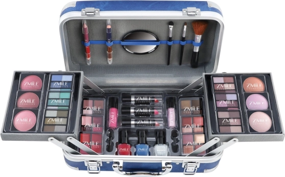 - 4× róż, 2× rozświetlacz, 3× pomadkę, 2× błyszczyk do ust, 3× lakier do paznokci, 1× dwustronną kredkę do oczu, 1× dwustronną kredkę do ust, 2× dwustronny aplikator do cieni, 1× długi aplikator, 1× aplikator do ust, 1× pędzelek. Przetestowane dermatologicznie, spełnia rygorystyczne normy UE.
