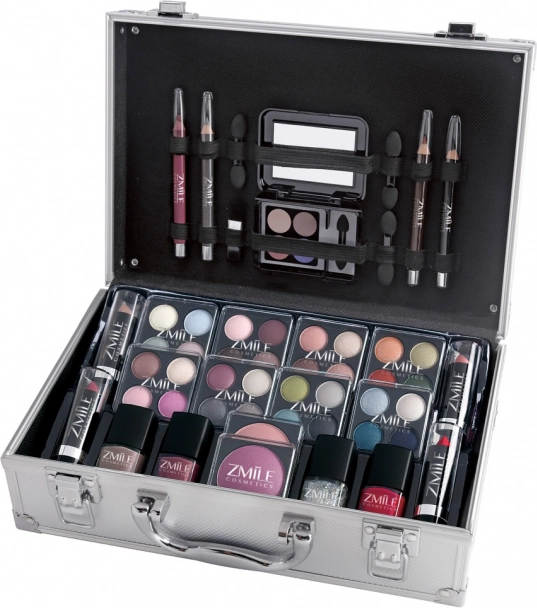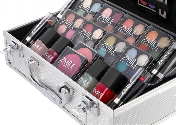 Odkryj uniwersalny kosmetyczny kuferek do makijażu dziennego i wieczorowego. Eleganckie srebrne etui skrywa 51 elementów, w tym 32 cienie do powiek, pomadki, lakiery do paznokci, róże oraz kredki do oczu i ust. Przetestowany dermatologicznie i zgodny z normami UE – idealny jako prezent i podróżny zestaw beauty.
