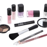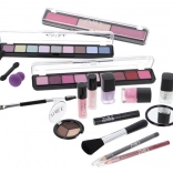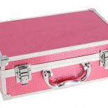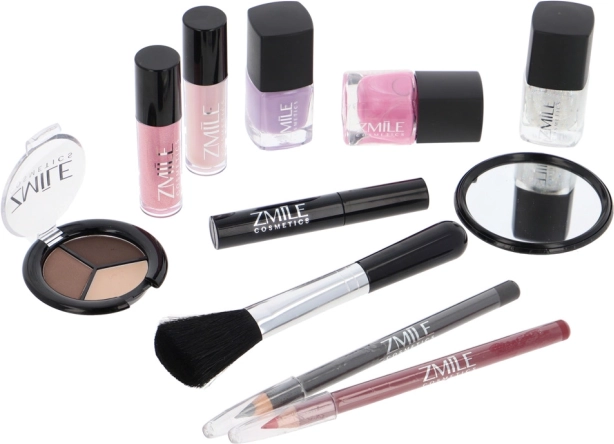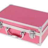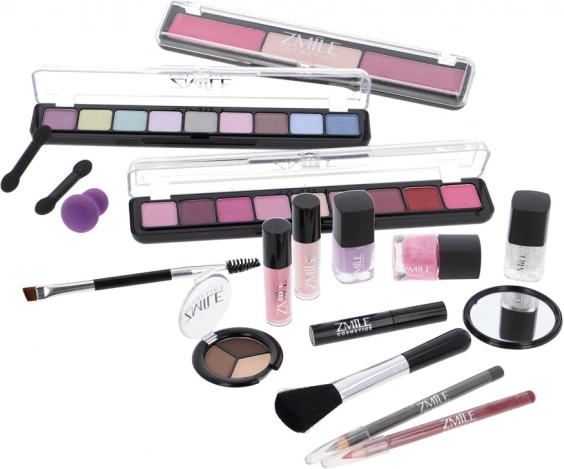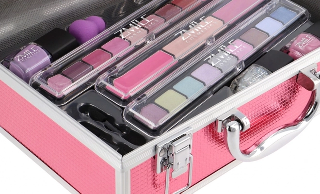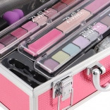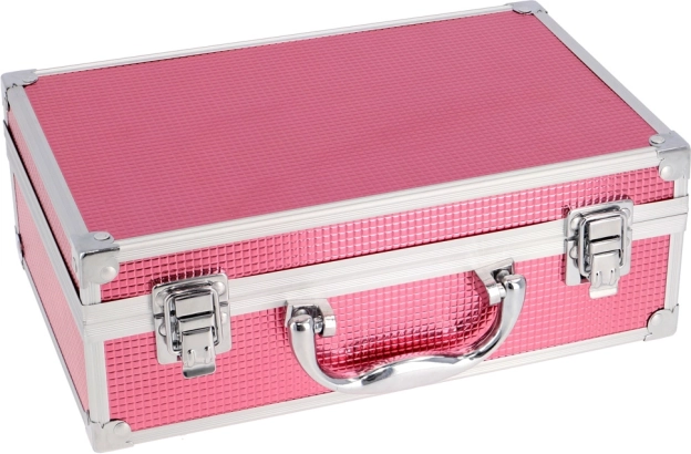 Kosmetyczny kuferek z aluminiową ramą Marry Berry z wbudowanym lusterkiem – łącznie 38 szt. akcesoriów. Zawiera: 18× cieni do powiek, 2× róż do policzków, 1× rozświetlacz, 1× wosk do brwi, 2× błyszczyk do ust, 3× lakier do paznokci, 1× tusz do rzęs, 1× kredkę do oczu, 1× kredkę do ust, 2× dwustronny aplikator do cieni, 1× dwustronny aplikator do brwi, 1× pędzel do różu, 1× okrągłe lusterko i 1× mini gąbeczkę do makijażu. Przetestowany dermatologicznie, spełnia rygorystyczne normy UE.