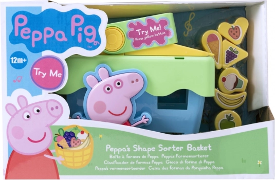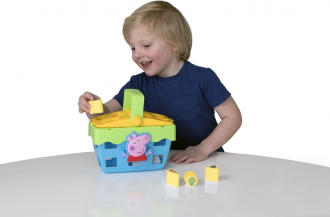 Sorter kształtów Piknikowy Koszyczek Świnka Peppa pomaga dzieciom rozpoznawać różne kształty w zabawny sposób, co poprawia ich orientację przestrzenną.