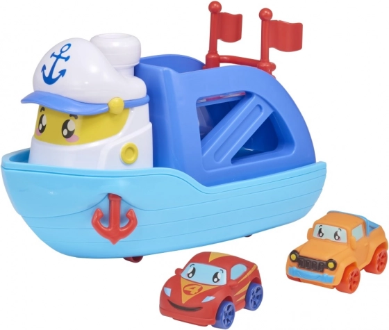 Teamsterz Mały prom to wesoły zestaw zabawek zaprojektowany dla małych odkrywców. Zawiera kolorowy prom oraz dwa małe autka z przyjaznymi buziami, idealne do zabawy w wannie.