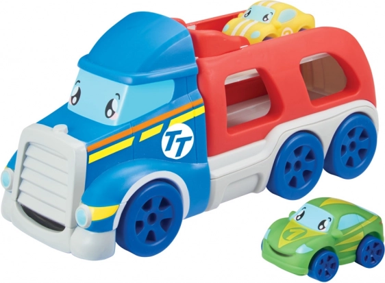 Autka są łatwe do chwytania i zaprojektowane w jasnych, wesołych kolorach. Transporter mieści do 4 autek i ma radosny wygląd, który na pewno ucieszy każde dziecko.