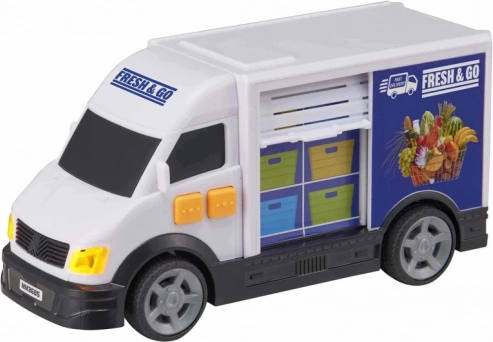 Ciężarówka oferuje światła i dźwięki, które dopełniają autentyczne wrażenia z pracy dostawczej.