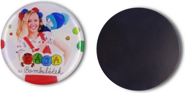 Luksusowy żywiczny magnes z motywem KÁJA A BAMBULÁČEK ucieszy małych i dużych fanów. Ma średnicę 45 mm, oferuje 2 różne wzory i jest odpowiedni dla dzieci od 3 lat.