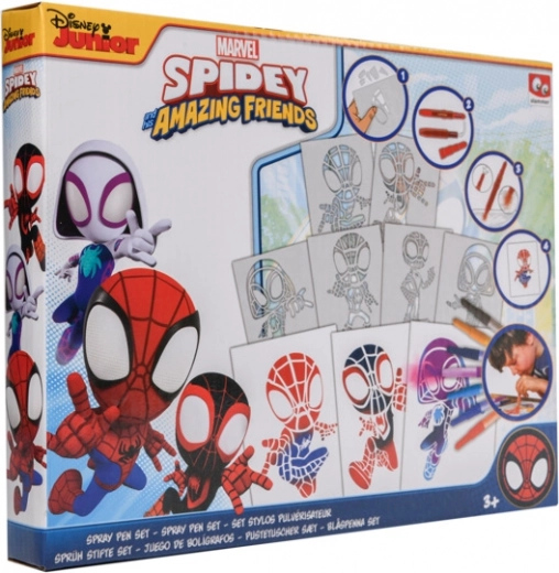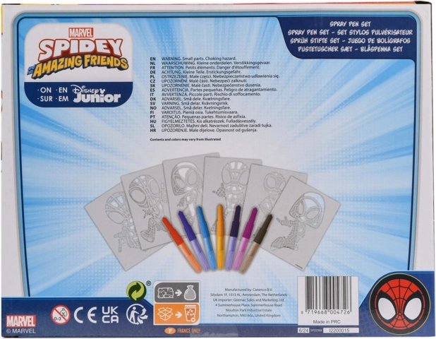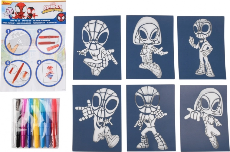 Malowanie dmuchanymi flamastrami Spidy – zawiera 7 sztuk dmuchanych flamastrów oraz 6 szablonów z obrazkami.