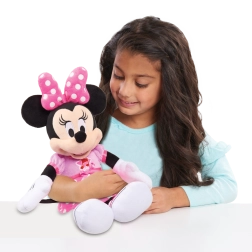 Ten uroczy pluszak Minnie Mouse ma 30 cm wysokości i nosi piękny różowy strój w białe grochy. Dzięki miękkim materiałom to idealna zabawka dla dzieci od trzeciego roku życia.