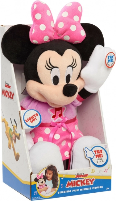 Naciśnij rękę Minnie Mouse i zaśpiewaj z nią piosenkę z Minnie's Bow-Toons, co daje dzieciom możliwość jednoczesnej zabawy i nauki.