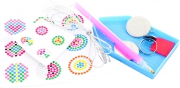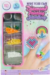 Ten kompletny zestaw do tworzenia biżuterii metodą diamentowego malowania wspiera wyobraźnię, motorykę małą i koncentrację. Dzieci wybierają spośród 9 szablonów do zawieszek i 4 szablonów do pierścionków, wsypują kryształki na podkładkę i za pomocą dołączonego pisaka łatwo nanoszą je na klejącą powierzchnię. Efektem są błyszczące i niepowtarzalne dodatki, które mogą z dumą nosić lub podarować.