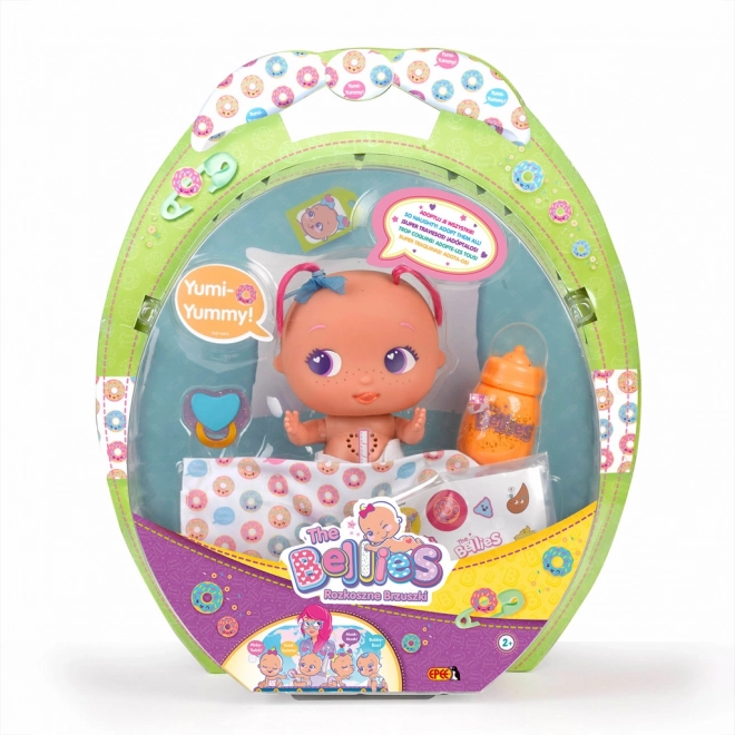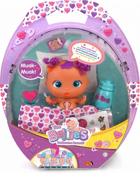 Lalki Brzuszki gaworzą, a ich serduszko bije, co symuluje realistyczne efekty dźwiękowe niemowlęcia.