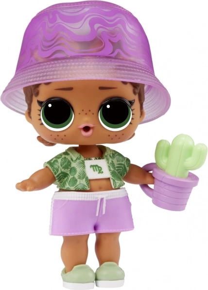 Lalka przychodzi z 7 niespodziankami, w tym z kolekcjonerskimi akcesoriami jak butelka, konewka, i inne.