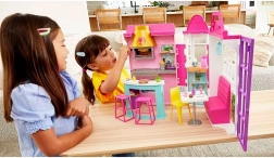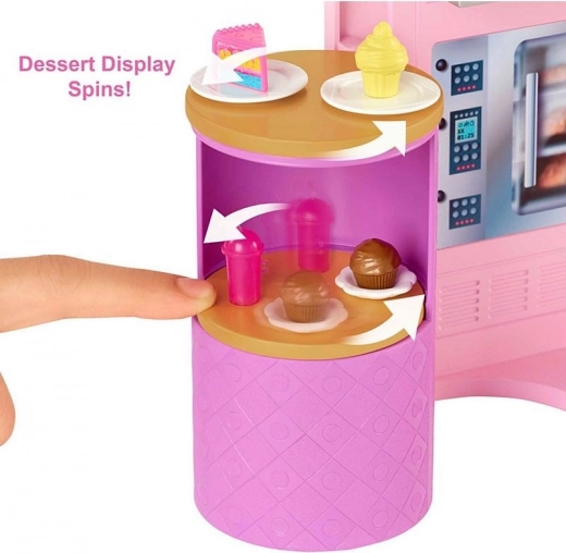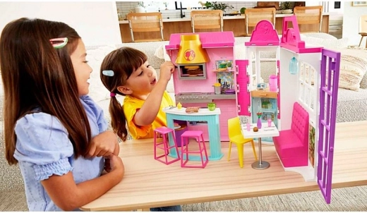 Dzieci mogą stać się częścią wydarzeń w restauracji Barbie, gdzie mogą pomóc lalce Barbie® (*nie znajduje się w zestawie*) przyjmować zamówienia i zapewniać gościom wygodne miejsca. Z sześcioma strefami zabawy jest tu wiele okazji do snucia opowieści.