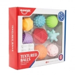 Ten zestaw teksturowanych piłeczek jest idealny dla dzieci od sześciu miesięcy. Wykonane są z silikonowego materiału, który jest przyjemny w dotyku i ułatwia chwytanie. Różne faktury na powierzchni piłeczek stymulują percepcję sensoryczną.