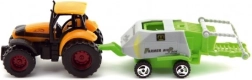 Model traktora z dużymi czarnymi kołami i szarym zbiornikiem oznaczonym jako 'FARMER'.