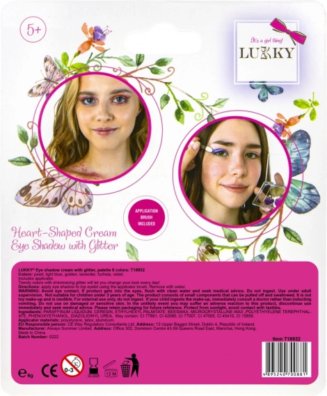 Kremowe cienie do powiek Lukky oferują sześć błyszczących kolorów, które są idealne do dziecięcej twórczości i zabawy z pędzelkiem.