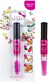 Przedstawiamy lakier do paznokci i brokat Lukky 2‑w‑1, który oferuje przepiękny kolor fuksji i umożliwia łatwe zdobienie paznokci bez potrzeby użycia zmywacza. Ten produkt ma kilka świetnych właściwości: