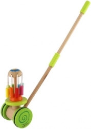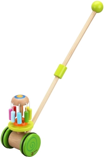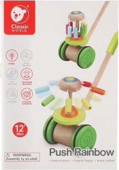 Drewniany kolorowy pchacz Classic World to idealna zabawka dla małych odkrywców, którzy uczą się chodzić. Pchacz wyposażony jest w kolorową karuzelę, która obraca się i wydaje przyjemne dźwięki, przyciągając uwagę dziecka i zachęcając do chodzenia.