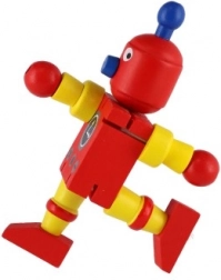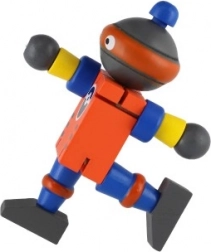 Połączenia na gumkach umożliwiają łatwe zginanie rąk, nóg i głowy. Dzieci mogą robota posadzić, postawić lub nadać mu superbohaterską pozę.