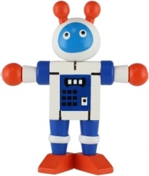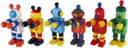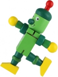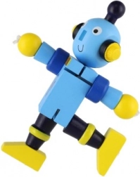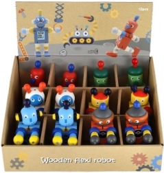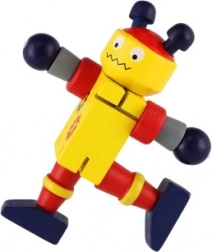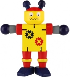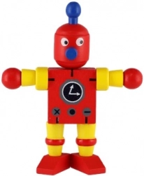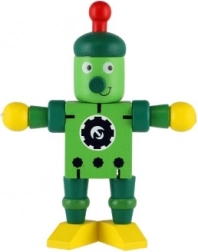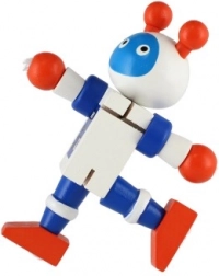 Uroczy drewniany robot o wysokości 12 cm ucieszy każdego małego odkrywcę. Dzięki elastycznym gumkom ma ruchome kończyny i głowę, więc dzieci łatwo go posadzą, postawią lub różnie zaaranżują. Zabawka wspiera małą motorykę, kreatywność i wyobraźnię. Odpowiednia od 18 miesięcy.