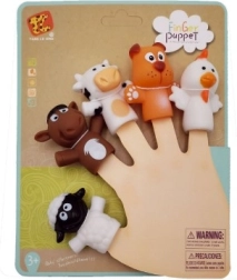Zestaw 5 pacynek na palce (krówka, konik, piesek, owieczka, kurczątko) do nieskończonych farmowych historii i zabawy.