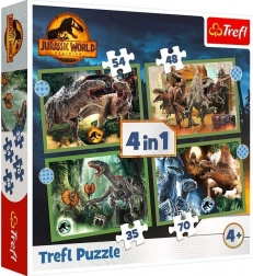 Zanurz się w fascynującym świecie dinozaurów z tym zestawem puzzli 4w1, zaprojektowanym dla wszystkich miłośników filmu Jurassic World. Po ułożeniu czekają na Ciebie cztery niesamowite obrazy, każdy o wymiarach 285 x 205 mm.