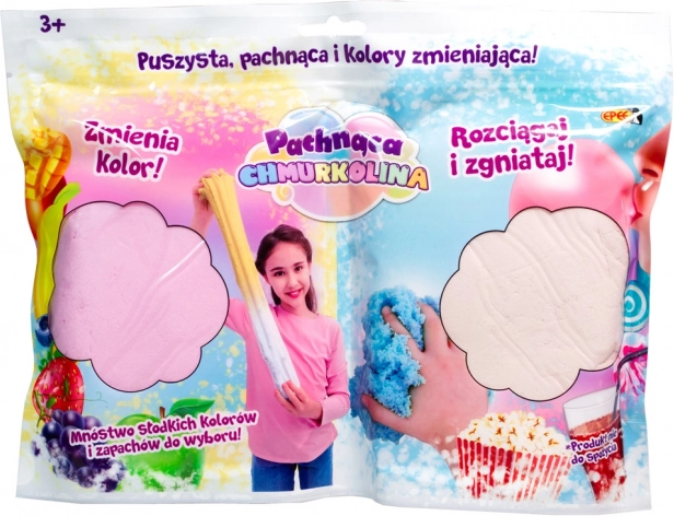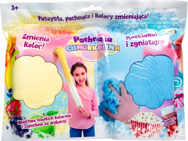 Odkryj nieograniczone możliwości tworzenia z Chmurkolina, miękką, delikatną i puszystą masą, którą można łatwo formować i wydłużać. Każdy zestaw zawiera dwie masy o unikalnym zapachu i zdolności zmiany koloru.