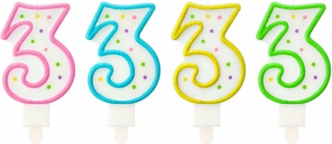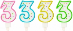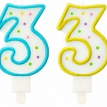 Świeczka na tort cyfra 3 o wysokości 7,3 cm jest doskonałym dodatkiem do świętowania urodzin o numerowanych latach.