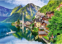 Żywe kolory i wysoka rozdzielczość oddają spokojne jezioro, tradycyjną architekturę i górską panoramę. Gotowa układanka prezentuje się dekoracyjnie i przenosi cię w serce Alp.