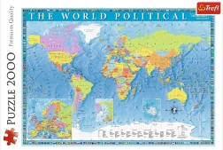 Odkryj świat z tymi wysokiej jakości puzzlami z 2000 elementów z motywem politycznej mapy świata. Po ułożeniu powstanie obraz o wymiarach 960 × 680 mm. Puzzle wykonane są z wysokiej jakości materiałów i specjalnego papieru kalandrowanego, który minimalizuje odblaski i ułatwia układanie. Produkcja odbywa się w Polsce z naciskiem na materiały ekologiczne.