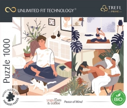 Odkryj relaks z puzzlami TREFL UFT Yoga, Cats & Coffee, które łączą domowy spokój z inteligentnym opracowaniem. Unikalna Unlimited Fit Technology pozwala łączyć motywy z tej samej serii i tworzyć własne kolaże bez ograniczeń.