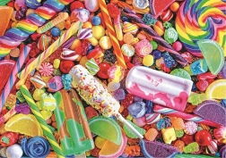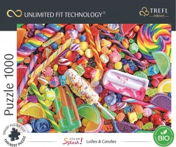Zanurz się w świecie kolorów z motywem lizaków i słodyczy i ułóż obraz o wymiarach ok. 68,3 × 48 cm. Seria TREFL Unlimited Fit Technology pozwala tworzyć własne kolaże z puzzli – granice wyznaczasz Ty. Specjalna technologia wykrawania gwarantuje, że różne motywy z serii UFT idealnie do siebie pasują.