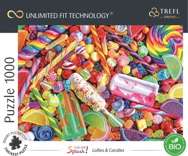 Puzzle TREFL UFT Color Splash 1000 elementów z motywem lizaków i słodyczy. Premium karton, unikalne kształty, łatwe łączenie motywów i ekologiczne opakowanie.