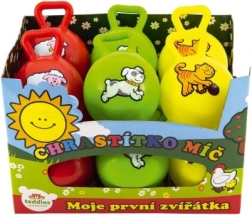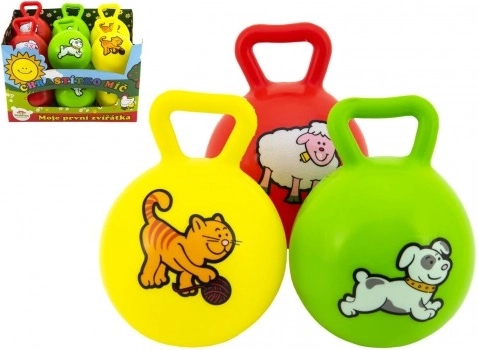 Kot, piesek czy owieczka na kolorowych piłeczkach przyciągają uwagę i wspierają percepcję wzrokową.