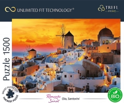 Odkryj urok greckiej Oii podczas romantycznego zachodu słońca i złóż w domu odrobinę śródziemnomorskiej atmosfery. System TREFL Unlimited Fit Technology (UFT) pozwala łączyć wiele motywów puzzli w jedną dużą mozaikę – granice wyznaczasz sam.