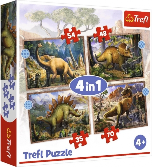 Puzzle Ciekawi dinozaury oferują cztery obrazki, które po ułożeniu mają wymiary 285 x 205 mm. Zestaw zawiera różną liczbę elementów – 35, 48, 54 i 70, co zapewnia zabawę dla młodszych i starszych miłośników układanek.