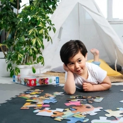 Puzzle, kolorowanka i gra na odwrocie każdego elementu zapewniają więcej możliwości zabawy.