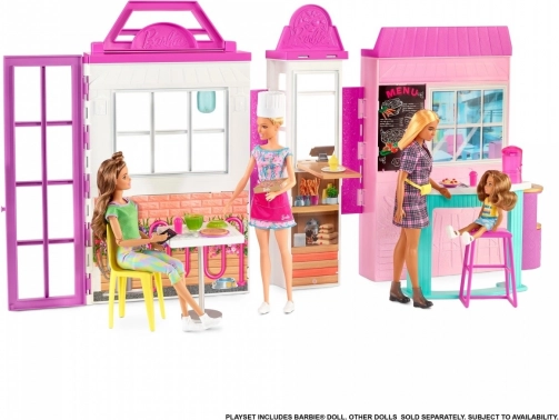 Ten realistyczny zestaw do zabawy w fast food oferuje dzieciom nieograniczone możliwości gry i opowiadania historii. Stylowy design, funkcjonalne elementy i bogate wyposażenie pobudzają wyobraźnię – od przyjmowania zamówień po serwowanie przy ladzie i w zewnętrznym boksie. W komplecie lalka BARBIE w sukience, uroczej różowej fartuszce i czapce kucharskiej, gotowa zostać kucharką, kelnerką i klientką.