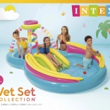 Centrum jest wykonane z sprawdzonego masywnego winylu, który jest trwały i bezpieczny. Ma dodatkowe wyściełanie dla bezpieczeństwa dzieci oraz zawór spustowy w podłodze dla łatwego spuszczania wody. Do zestawu dołączona jest również łatka naprawcza na nieprzewidziane sytuacje.