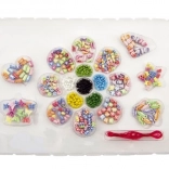 Zestaw zawiera różne kształty i kolory koralików, które wspierają kreatywność i wyjątkowość każdej twórczości.
