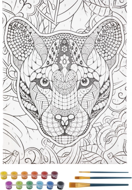 Stań się na chwilę malarzem i stwórz własny obraz z motywem tygrysa. To proste: wypełniaj ponumerowane pola farbami o tym samym numerze. Dzięki numeracji efekt jest pewny nawet dla początkujących, a jednocześnie ucieszy również zaawansowanych. Zestaw wspiera cierpliwość, odprężenie i kreatywne wyrażanie siebie.