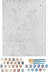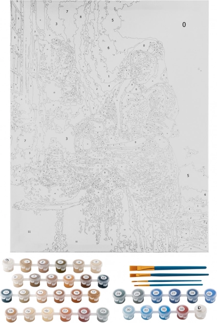 Wszystko, czego potrzebujesz, w jednym opakowaniu: nadrukowane płótno, 35 farb i 4 pędzle – otwórz i zaczynaj malować bez dodatkowych zakupów.